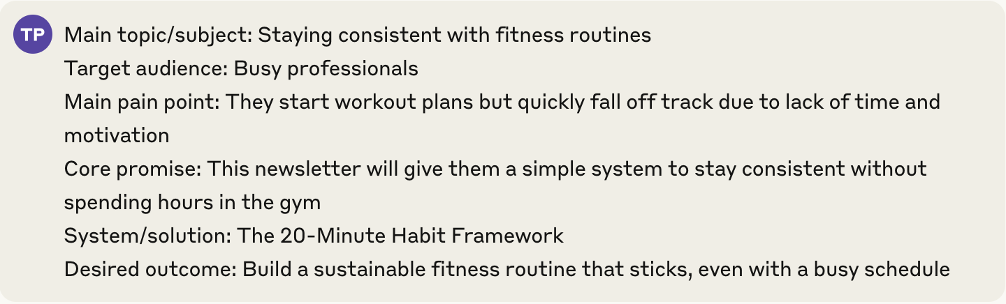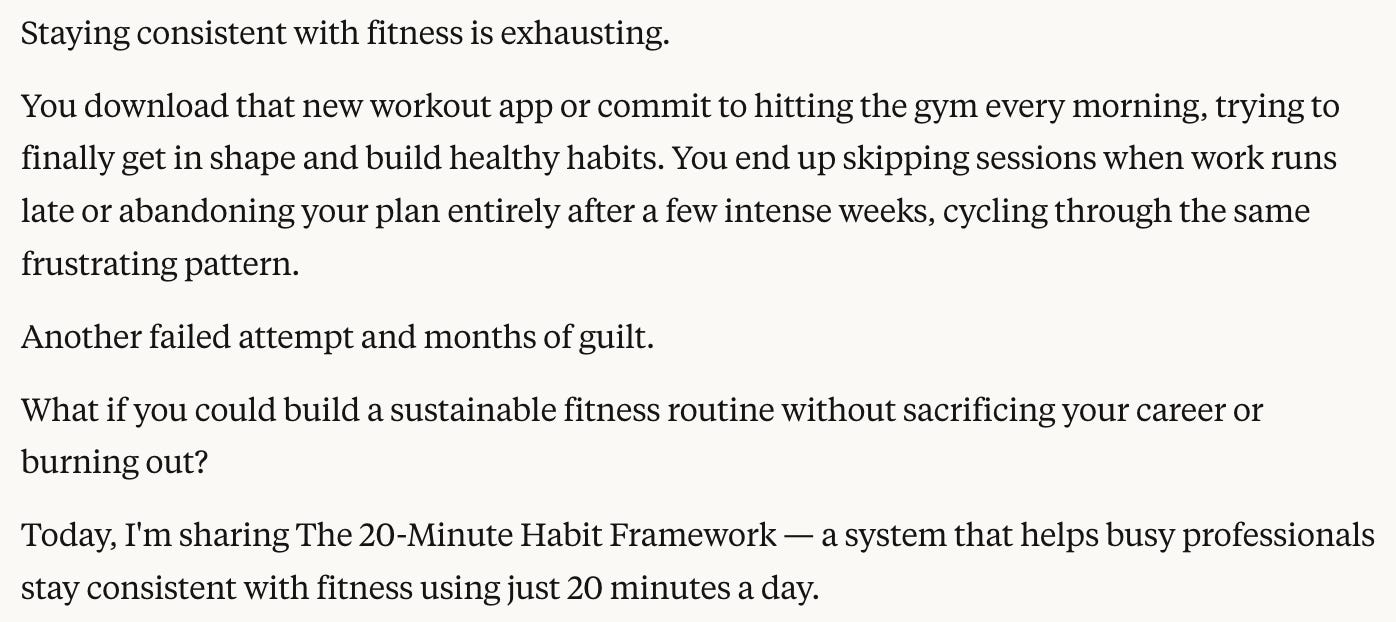 Let’s say you’re teaching a framework that helps busy professionals stay consistent with workouts.