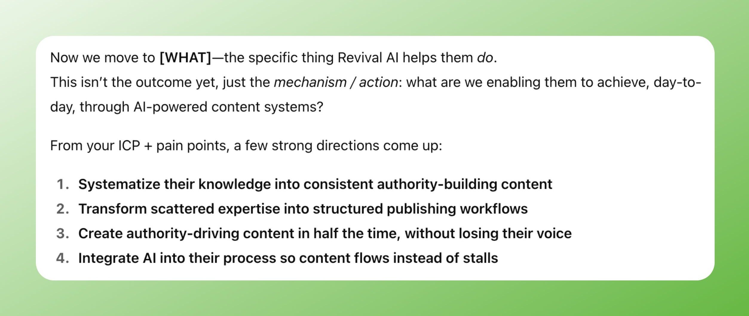 Now, let’s combine these using AI into a powerful statement like this that makes your audience think: “Yes, that’s exactly what I need.”: